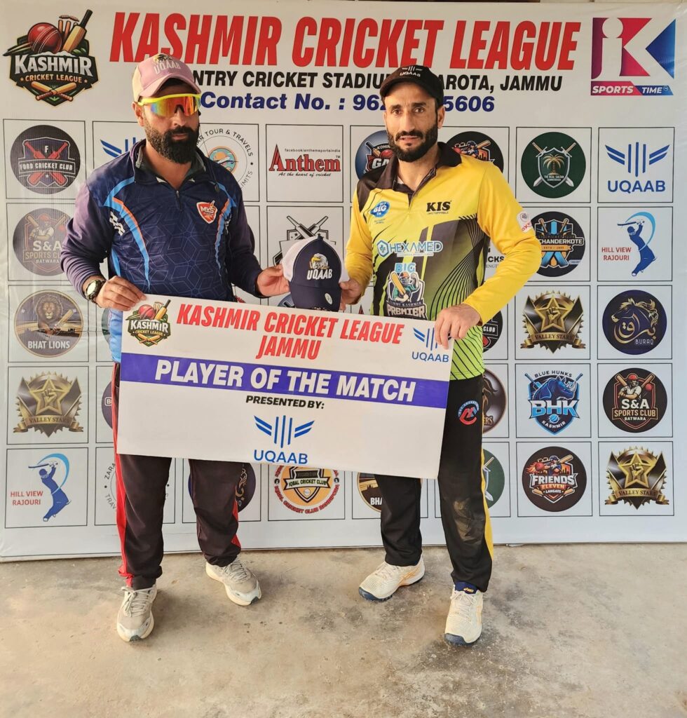 After winning the toss Skipper of Bhat Lions Kupwara invited BCC Chanderkote to set the target, while batting first BCC Chanderkote with the help of Amir Lefty’s brilliant 61, Asif Muzafar’s 27, and Mohd Iqbal’s 18 runs scored 183 for the loss of 8 wickets in the allotted 19 overs. Naveed Bungree took two wickets for Lions.