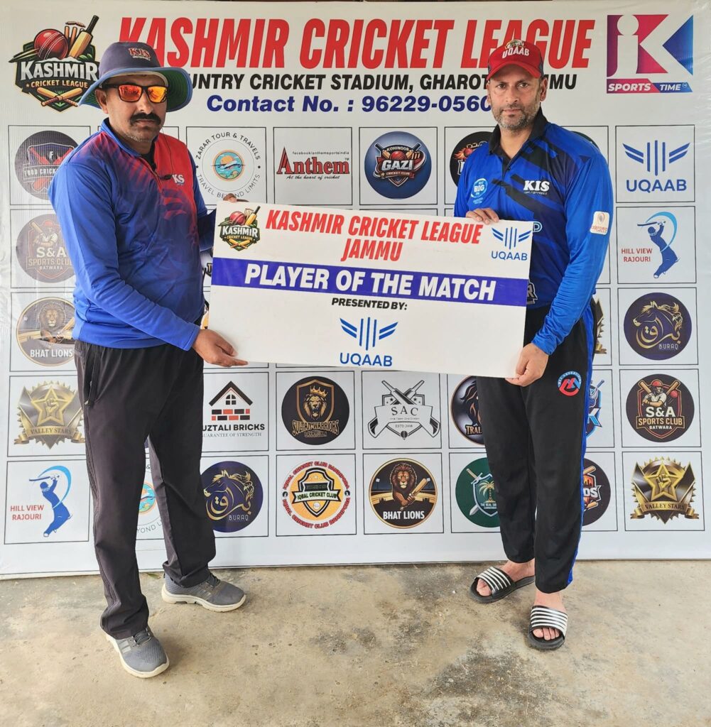 Iqbal Bhat and Ubaid Khan were the top scorers for the side, they scored 30 and 23 runs respectively, in the end Anzer Jahangir scored run a ball 16 runs contribution.
